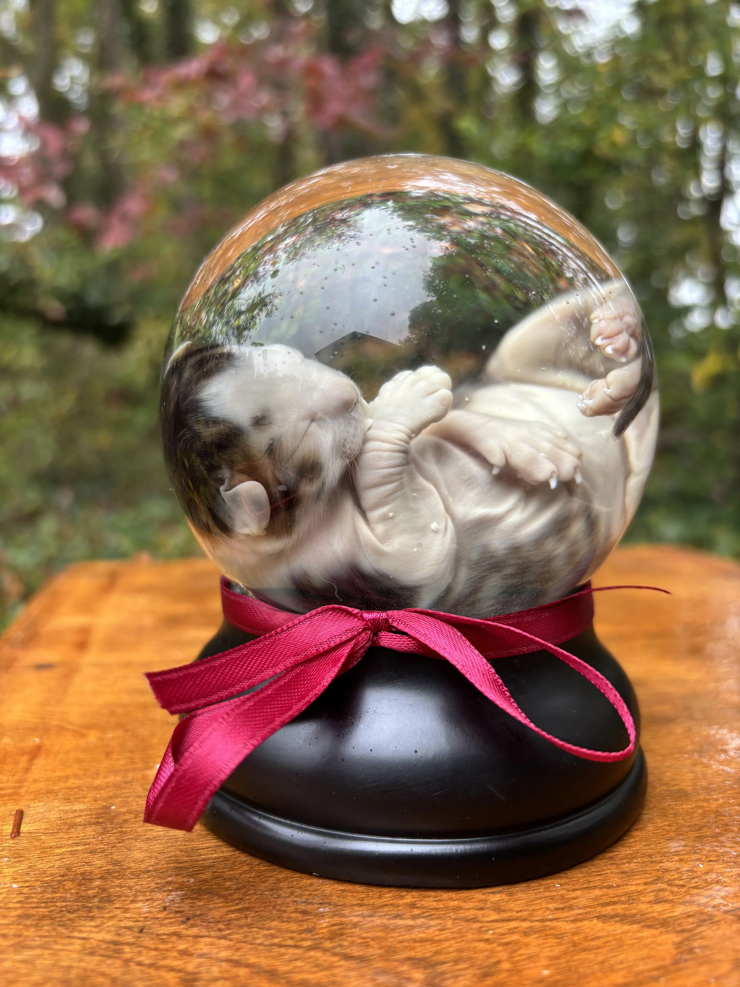 once you’re ready to jar your specimen, put on your gloves and pose your little one as you’d like them to rest.